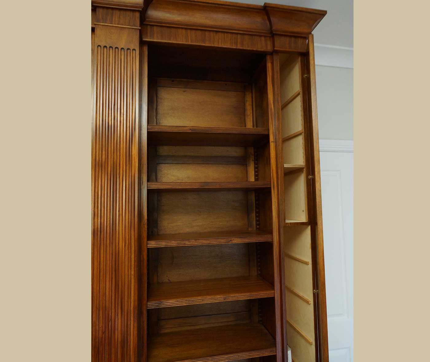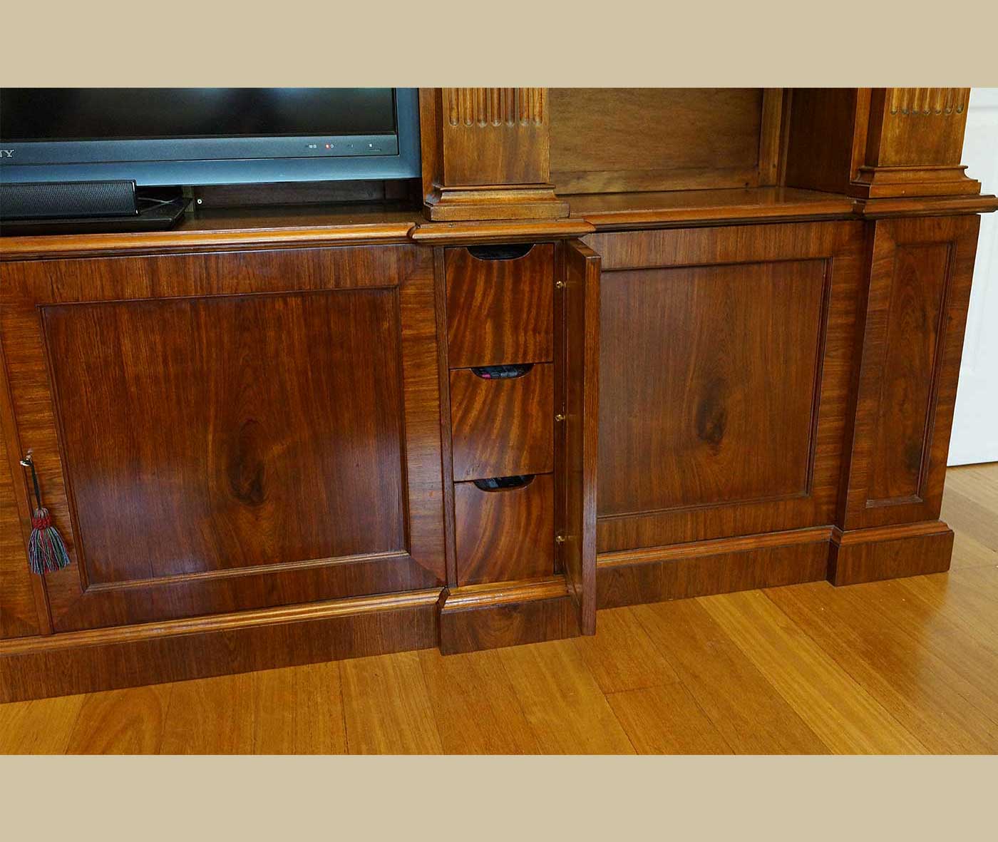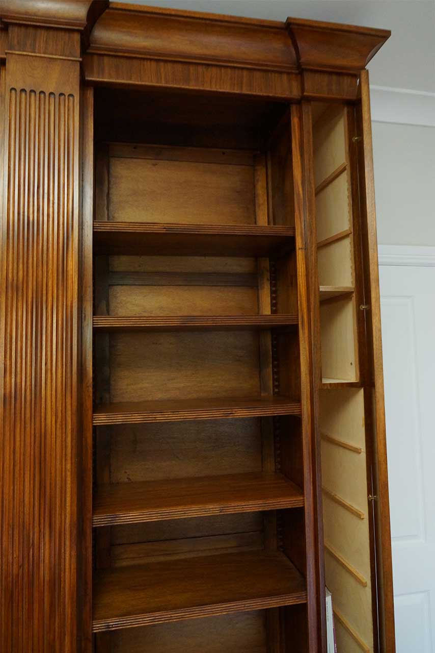 This marble topped console table was designed to have two ebonised lions head and feet, standing on a low pedestal. The chosen timber was rosewood as a background with parcel gilt highlights. The background mirror reflects the back of the feet and helps to light up a room with reflected light. Its relatively small size made this piece ideal for a smaller apartment.