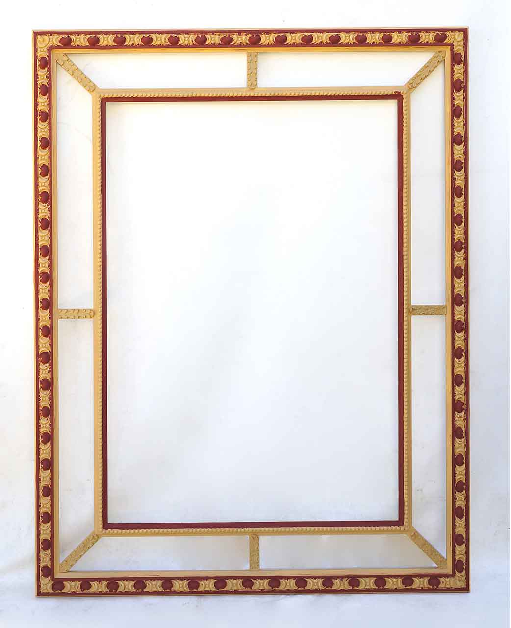 This is the stage where the raw timber frame has been treated with rabbit skin glue and gesso. There are several layers of gesso needed because there would be water-gilding on the frame. There must be a thick base of gesso between the timber and the gold leaf that can be compressed by burnishing the gold leaf with an agate stone tool to create the mirror -like finish of the water-gilding.