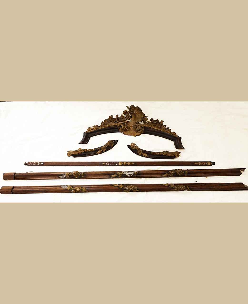 - Items may arrive in pieces, with missing and broken elements. Restoration entails fixing the damage, putting the existing timber parts together, solidifying the structure, replacing missing segments, and gilding the frame again, if required. Shellacking restores the colour and accentuates the patterns in the wood. The frame restoration should be aged to match the earlier finish if parts are newly added.